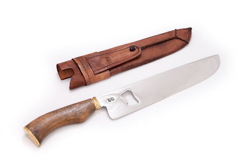 Descrição: Faca para churrasco com abridor de garrafa na lâmina.